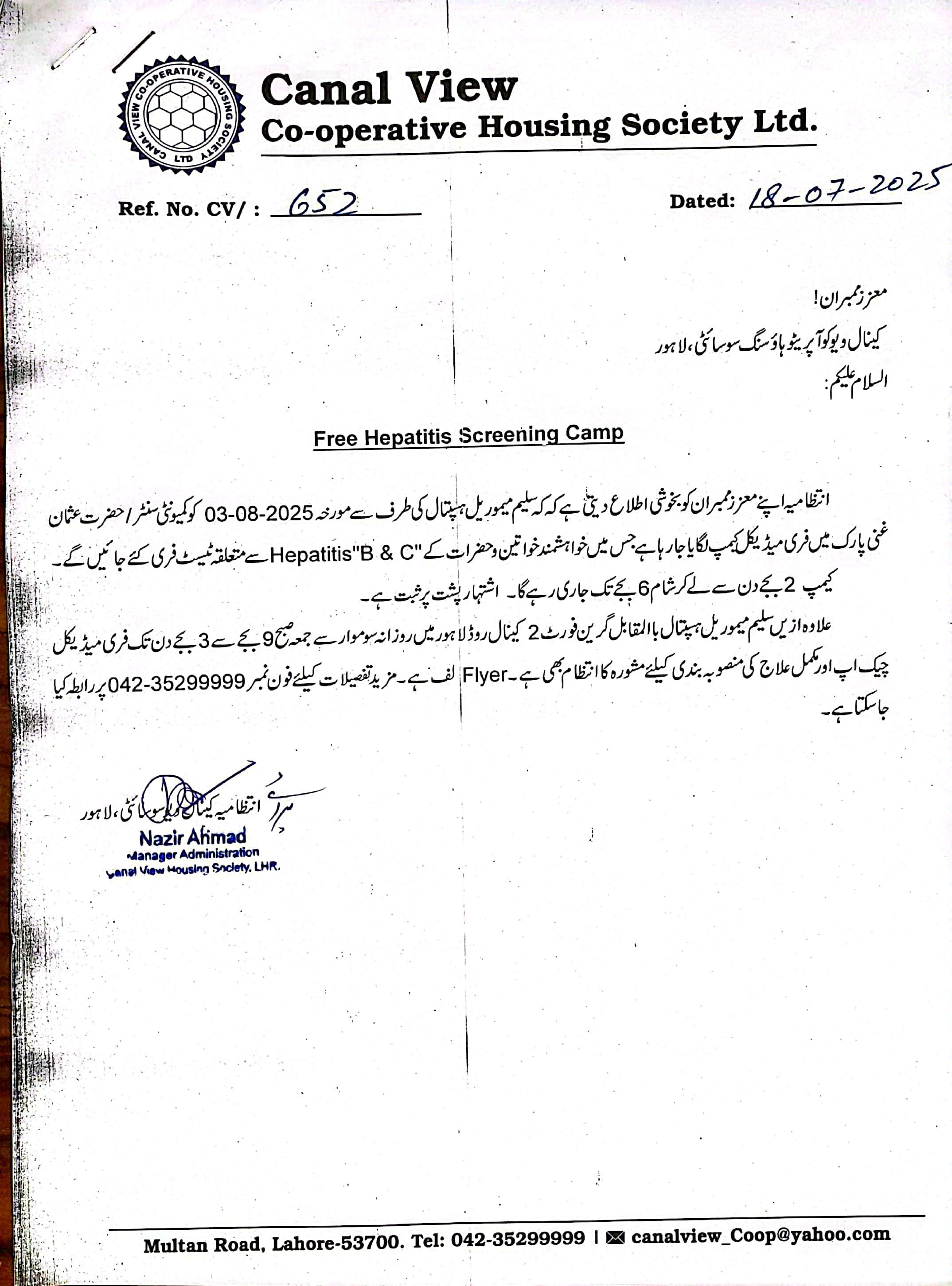 Cir. # CV652, 18-07-2025 |